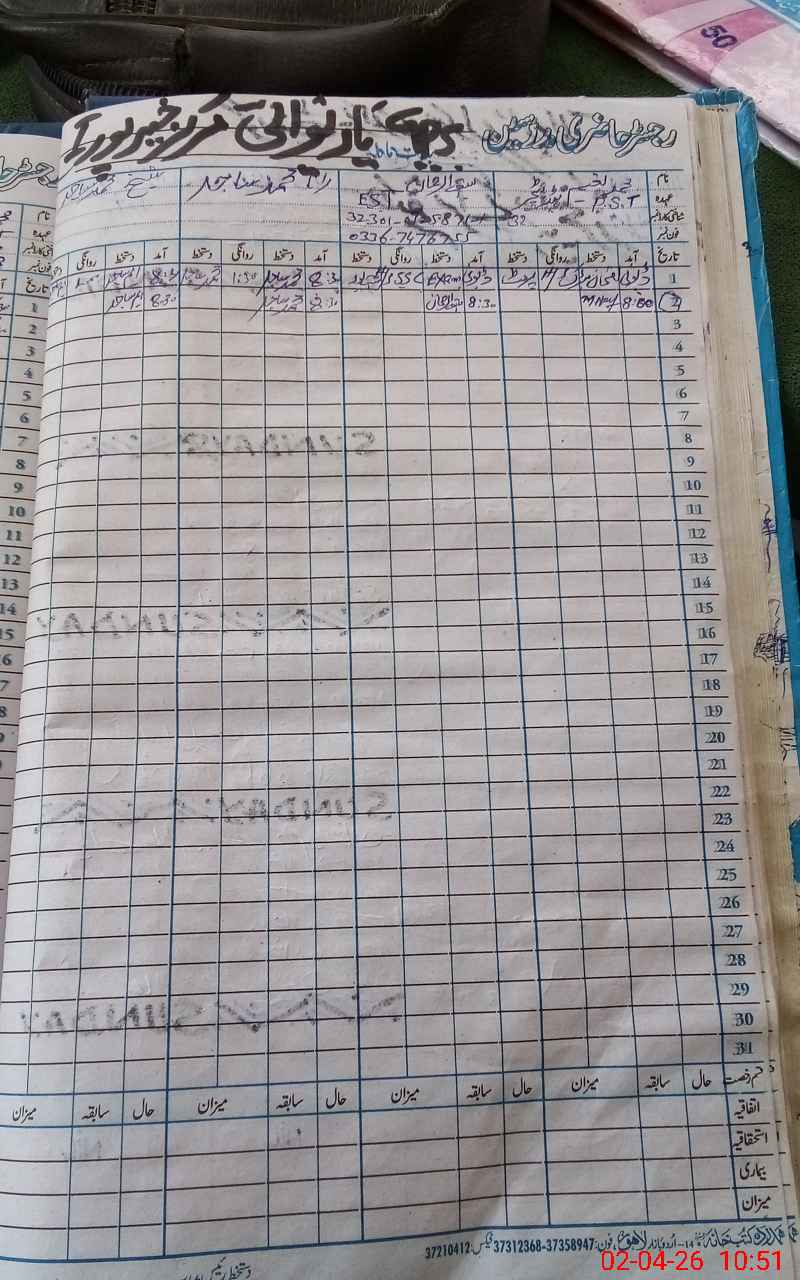 | Name: MU**** NA**** Designation: (School Headmaster's/Headmistress's) PST Phone/Cell Number: 03**** |
