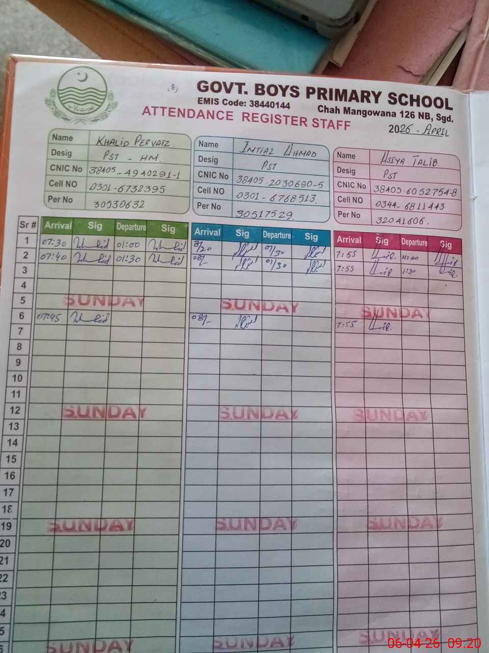| EMIS Code: 38440144 | Name of School: GPS CHAK NO.126 NB CHAH MUNGWANA | |||