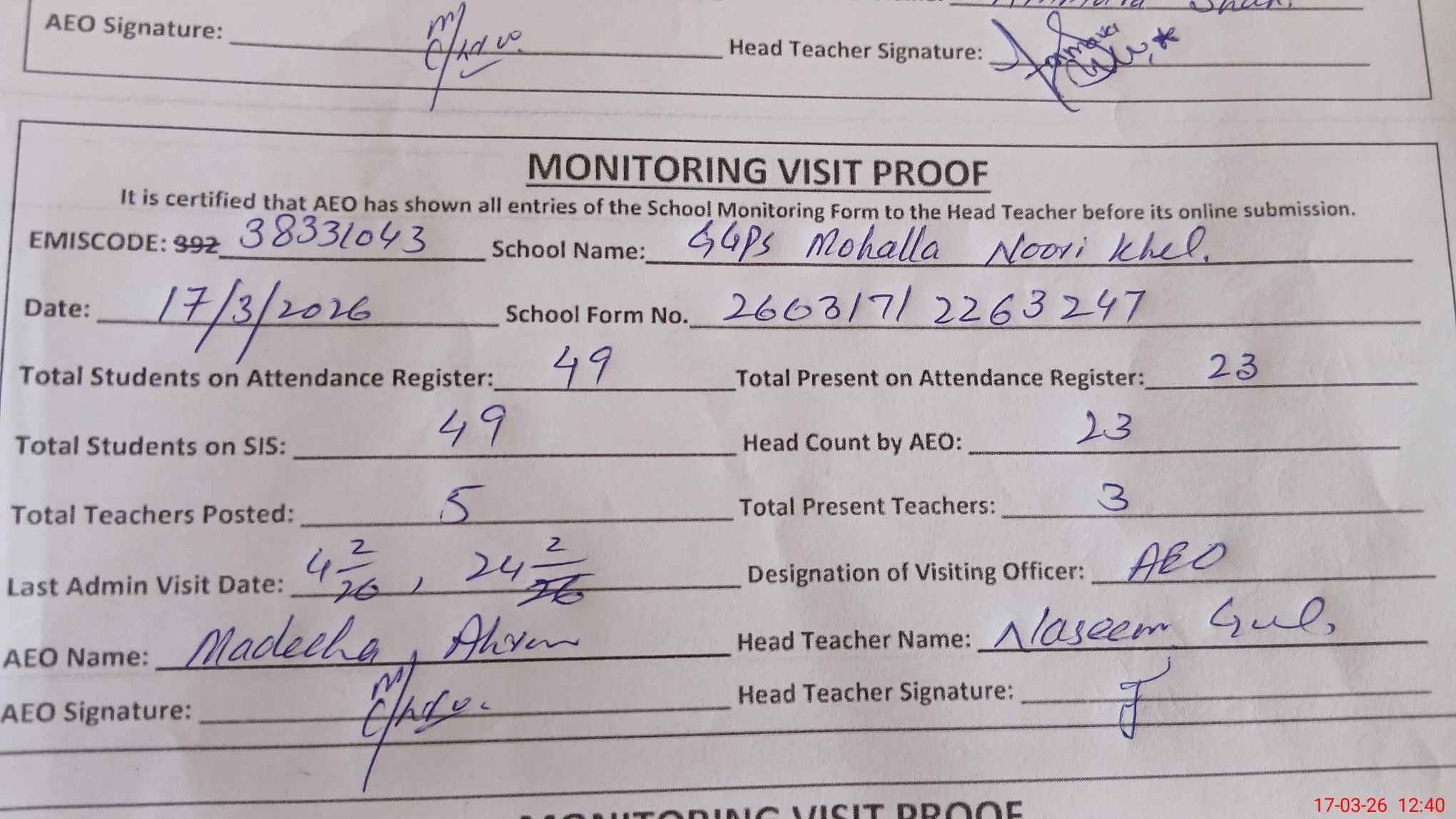 | EMIS Code: 38331043 | Name of School: GGPS MOH NOORI KHEL KUNDIAN | |||