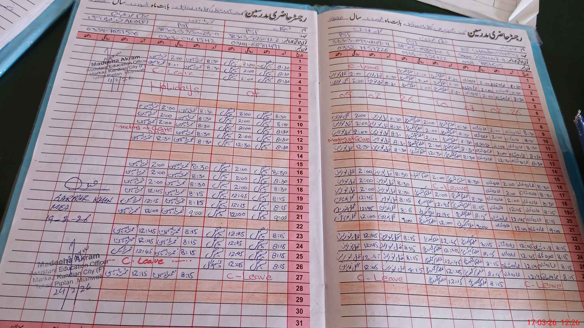 | Name: Am**** Sh**** Designation: (School Headmaster's/Headmistress's) PST Phone/Cell Number: 03**** |