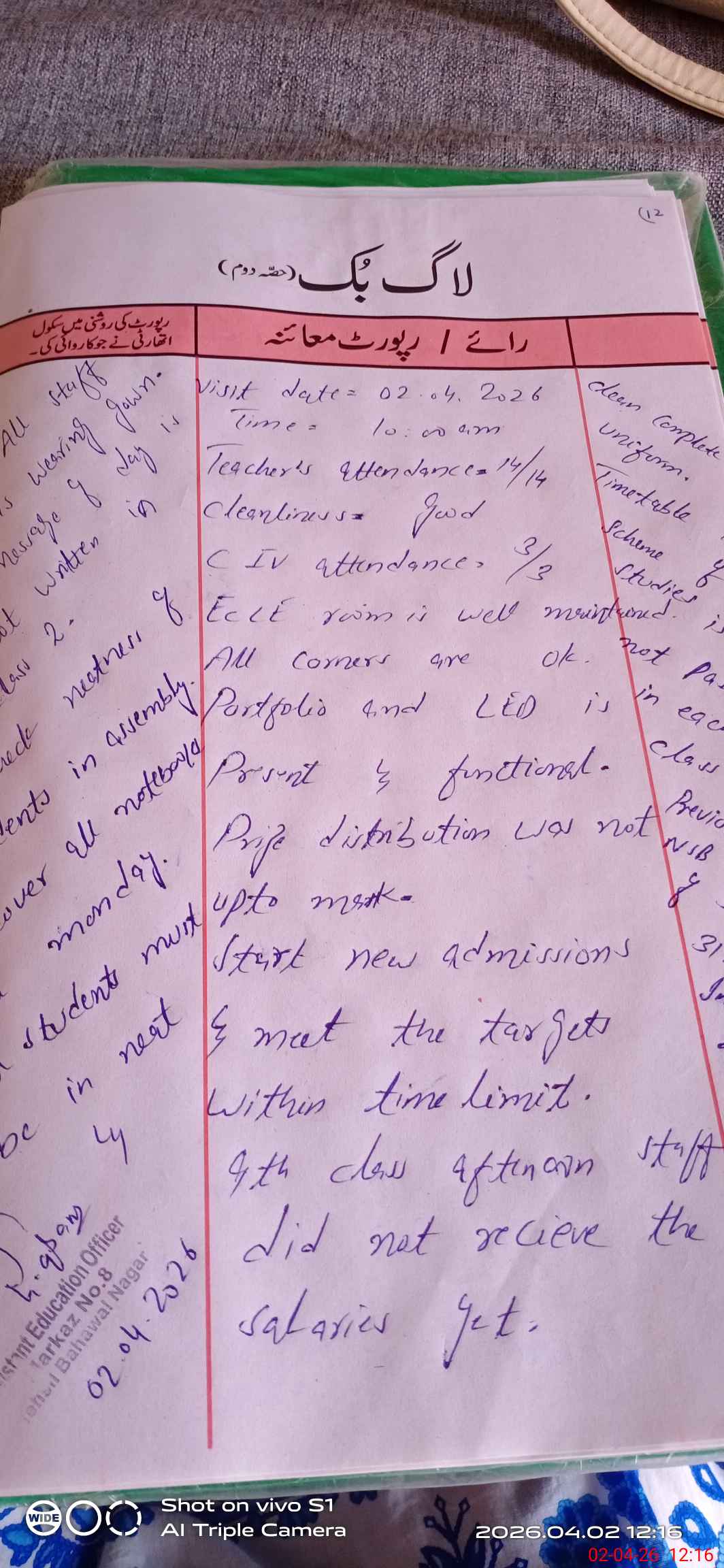 | Name: DI**** YO**** Designation: (School Headmaster's/Headmistress's) S.S.T.(genarel) Phone/Cell Number: 03**** |