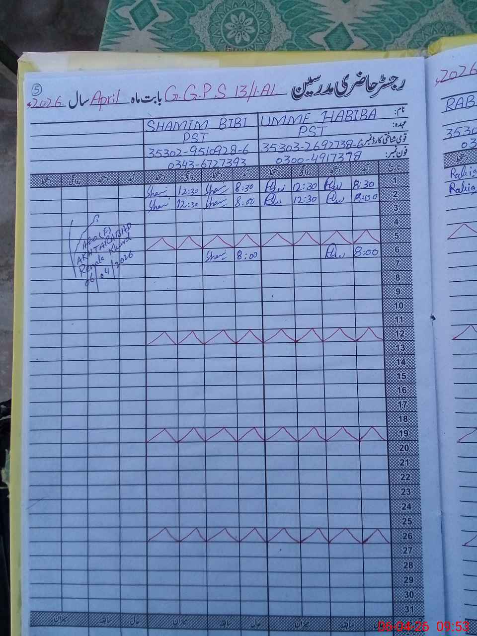 | CNIC | Full Name | Designation | R/C | Absence During Last Calender Month |