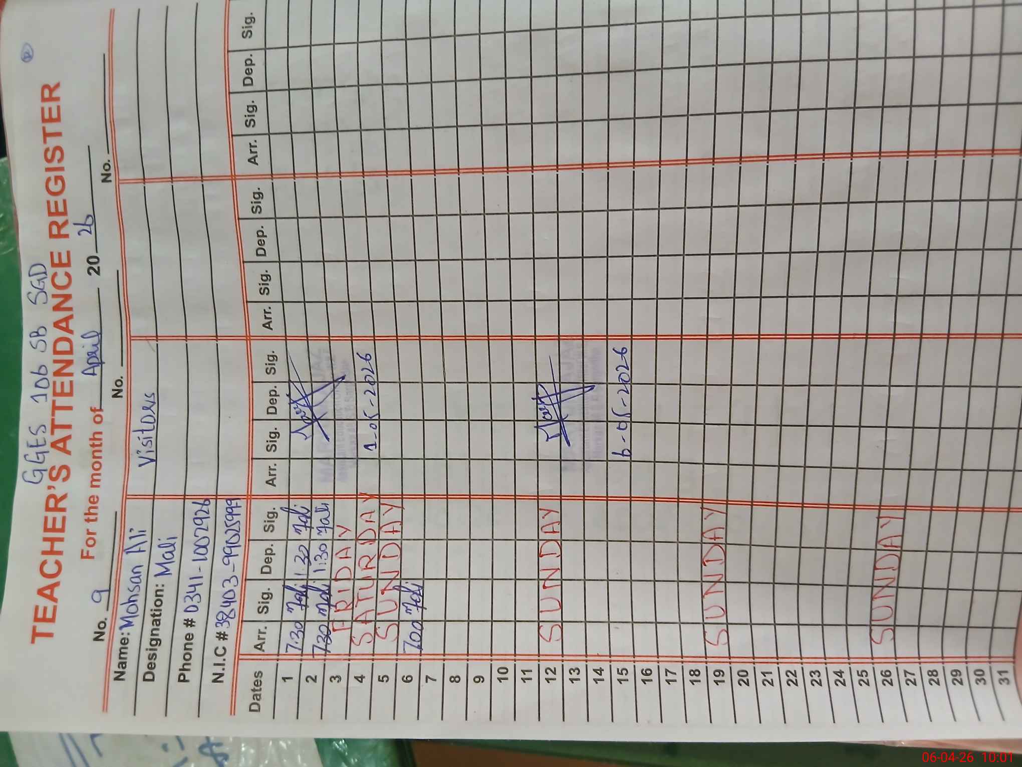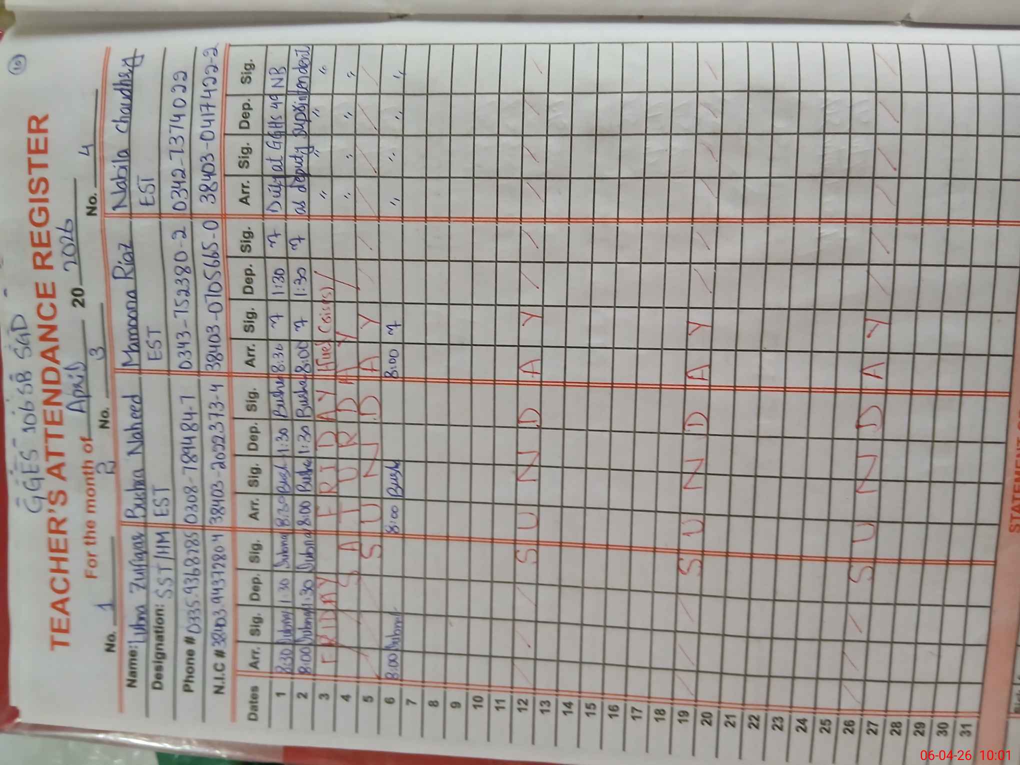 | Name: LU**** ZU**** Designation: (School Headmaster's/Headmistress's) SST Phone/Cell Number: 03**** |