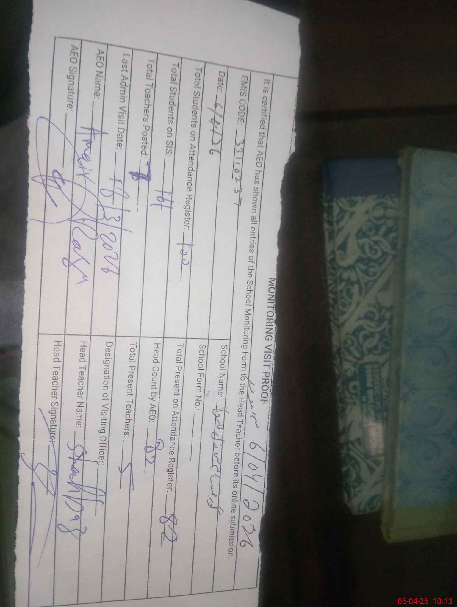 | Certified that this School was Inspected by the Undersigned MEA/DMO Today and the Information Stated Above is as Per Record. | |||||