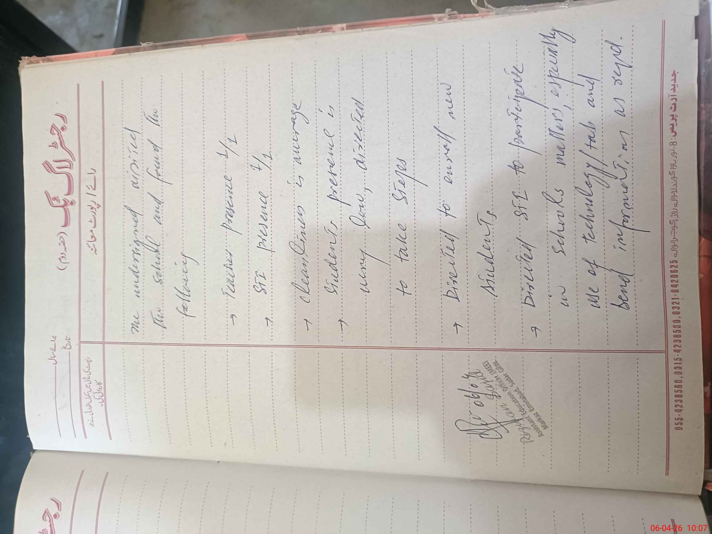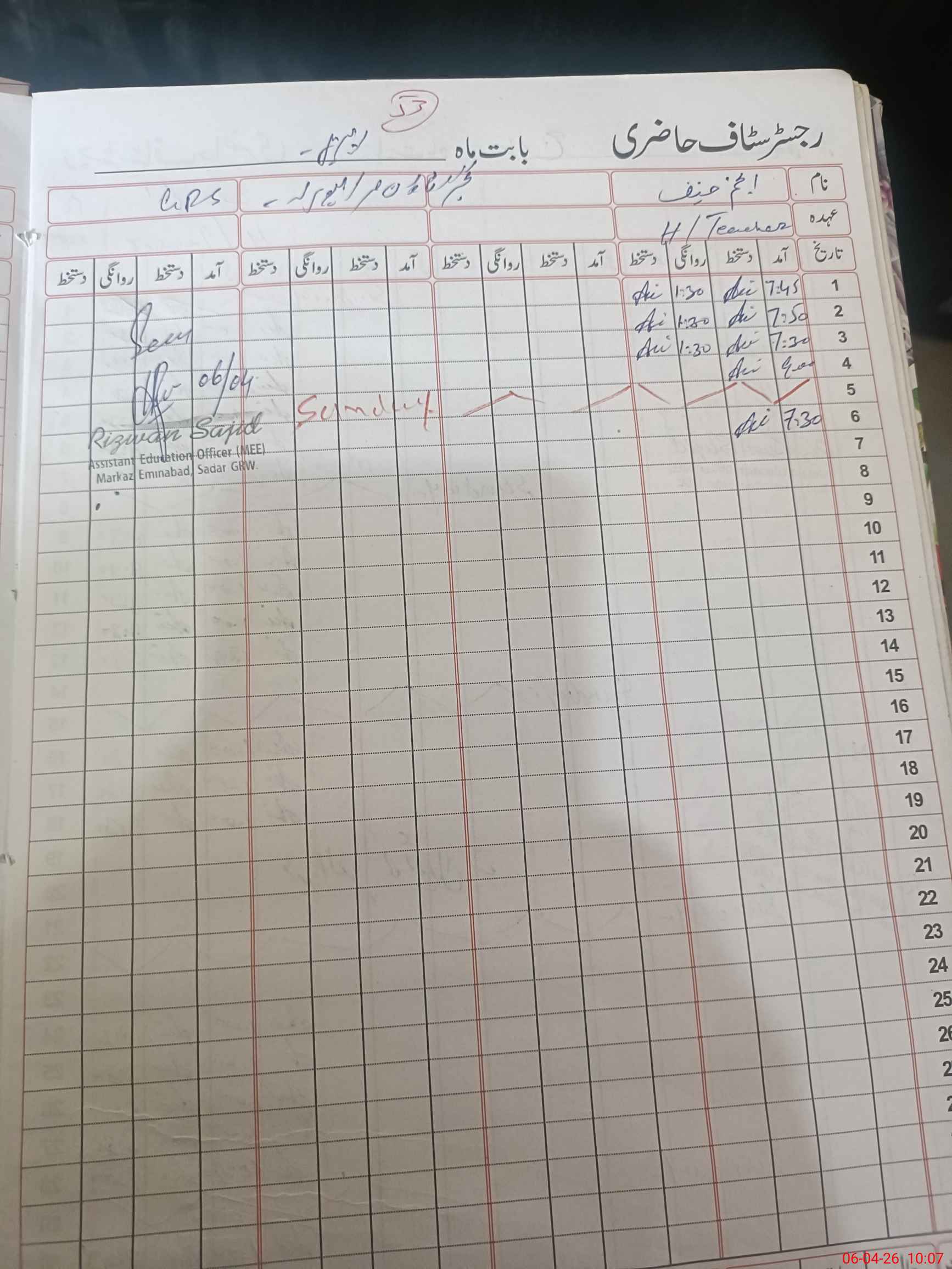 | Name: An**** Ha**** Designation: (School Headmaster's/Headmistress's) PST Phone/Cell Number: 03**** |