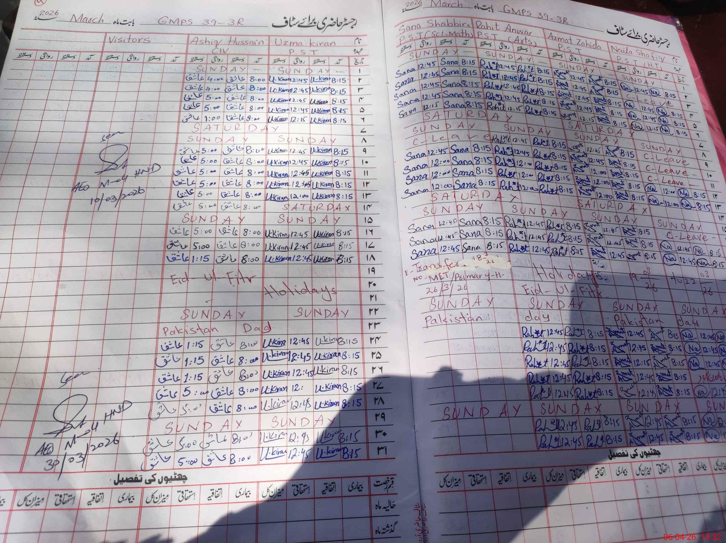 | Leave | Duty | Absent | Maternity | Medical | Ex- Pak |