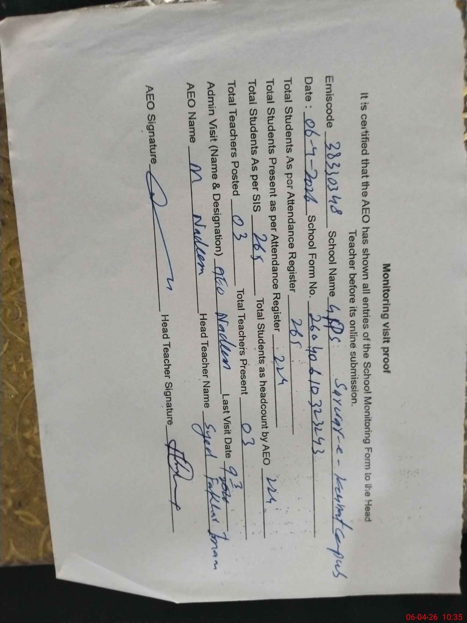 | Name: Fa**** Im**** Sh**** Designation: (School Headmaster's/Headmistress's) PST Phone/Cell Number: 03**** |