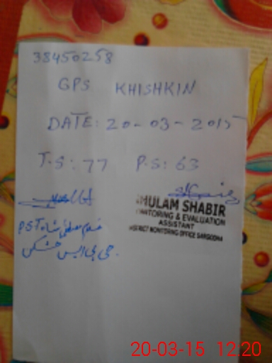 | EMIS Code: 38450258 | Name of School: GPS KHISHKAN | |||