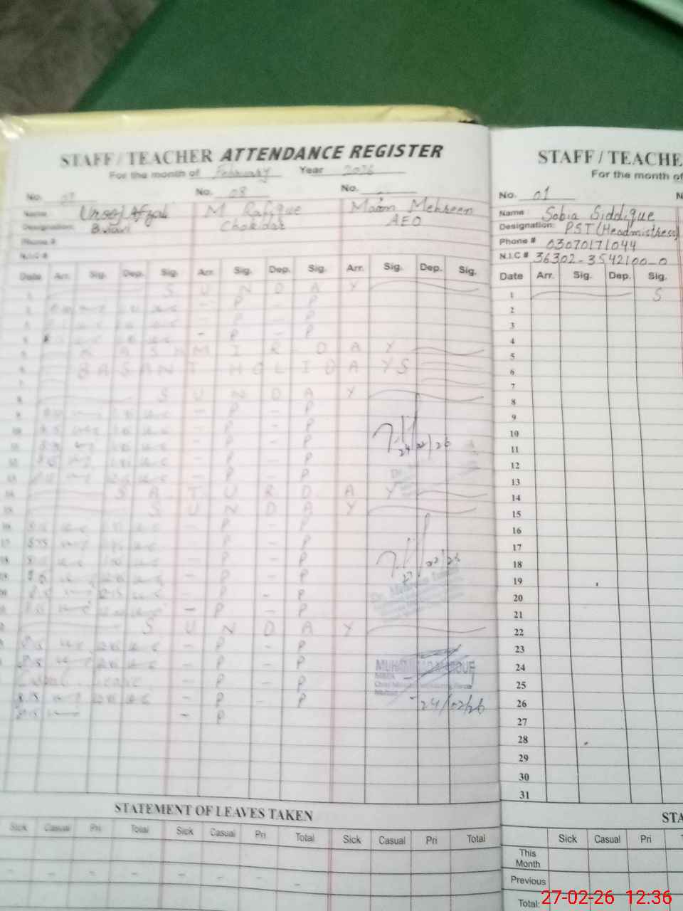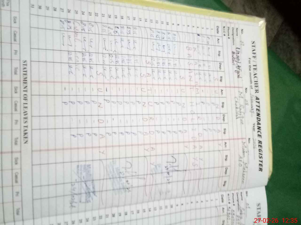 | 33**** | Sa**** An**** | PST Science/Maths | Regular | 0 | 0 | 0 | 0 | 0 | 0 | 0 | 0 | 0 | Maternity |