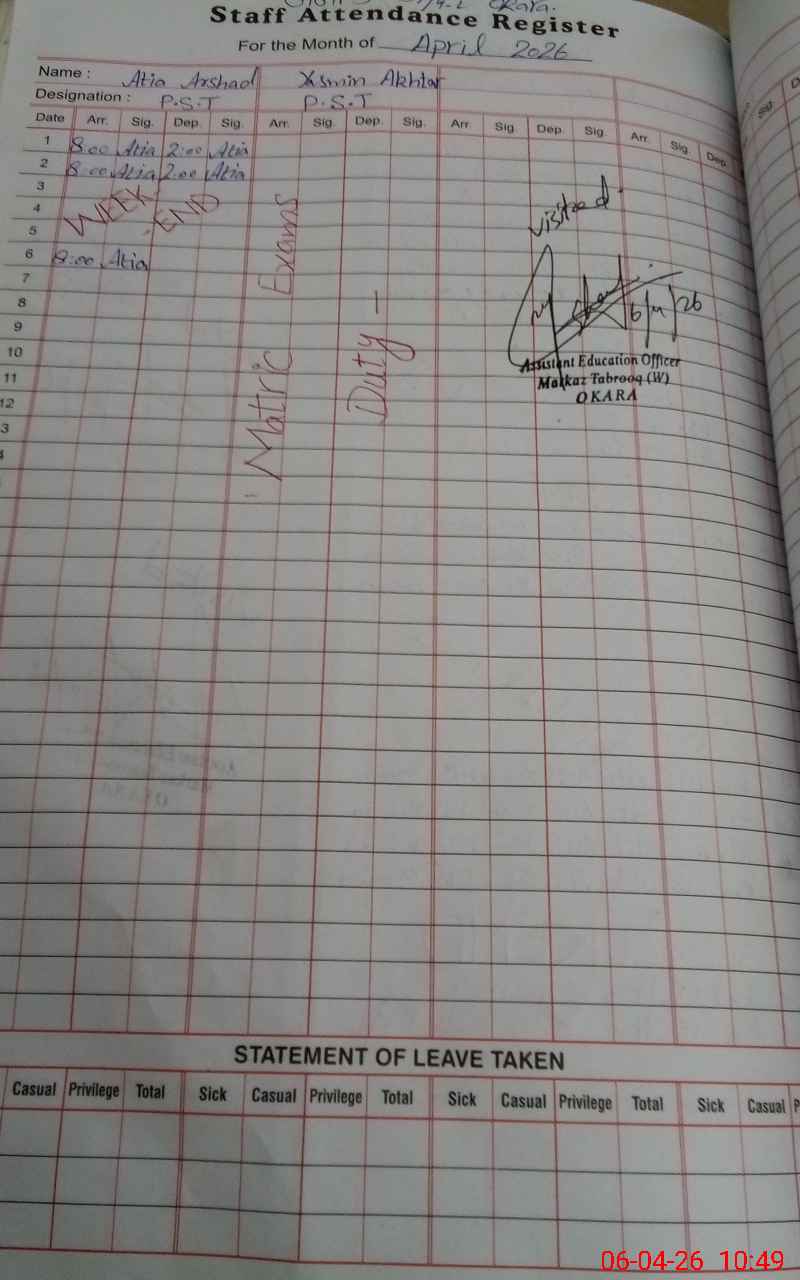 | Name: At**** Ar**** Designation: (School Headmaster's/Headmistress's) PST Phone/Cell Number: 03**** |