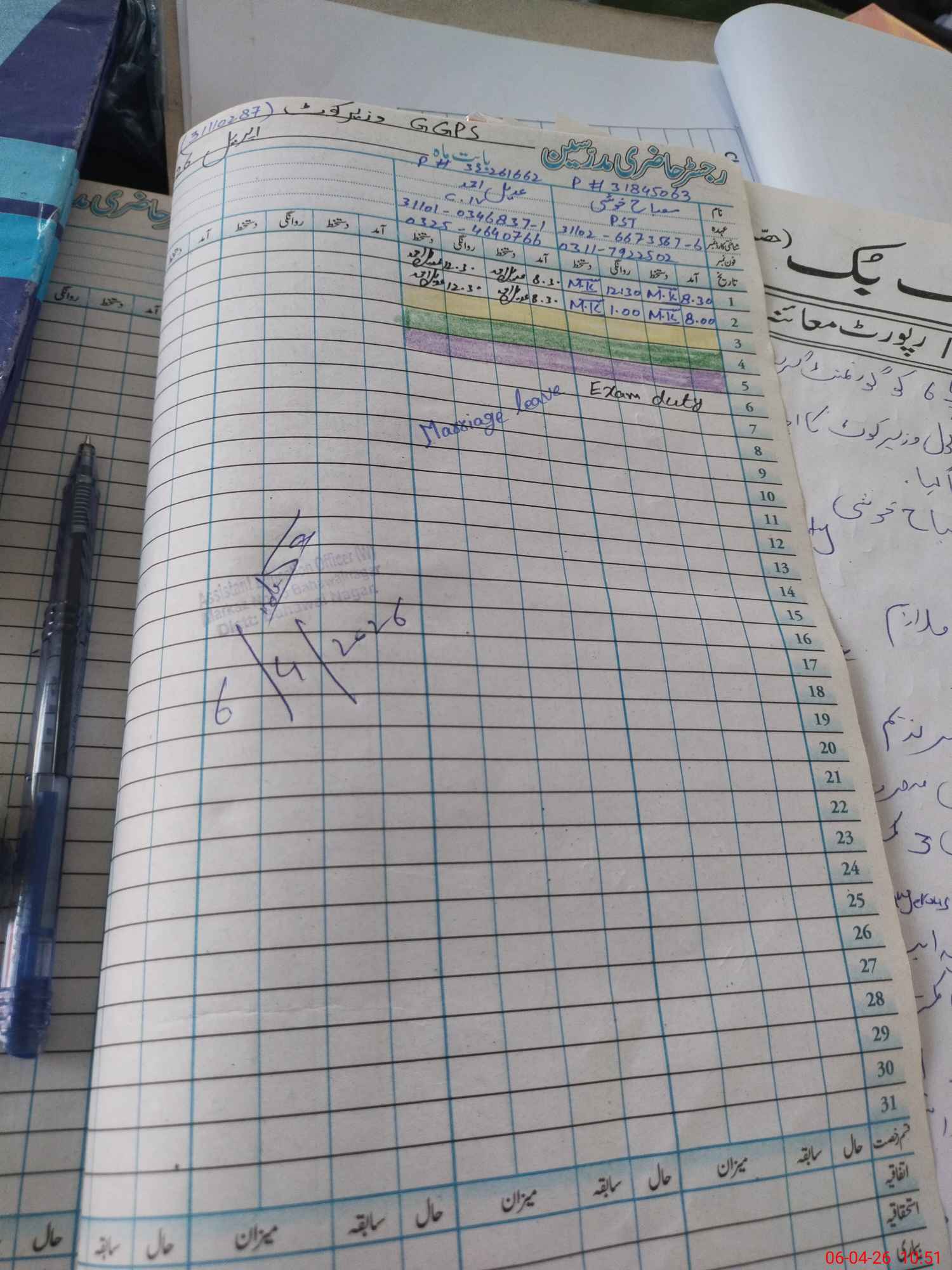 | 31**** | Mi**** Kh**** | PST Arts | Regular | 0 | 0 | 0 | 0 | 0 | 0 | 0 | 0 | 0 | Exam Duty |