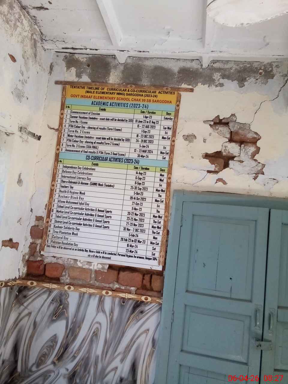 | Total no. of Classrooms: 8 No. of Classrooms Used for Teaching: 6 No. of Classrooms Storing Old Furniture, FTBs, etc: 0Comments if Any: Roof of Bramda in front of two rooms has been fallen awaiting funds to be repaired |