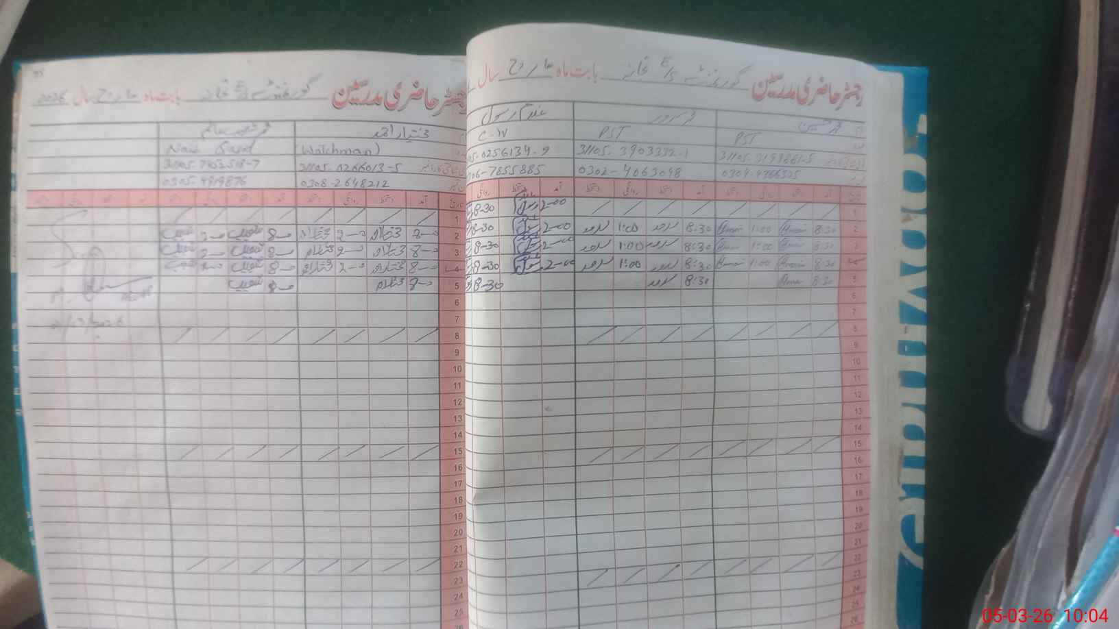 | CNIC | Full Name | Designation | R/C | Absence During Last Calender Month |