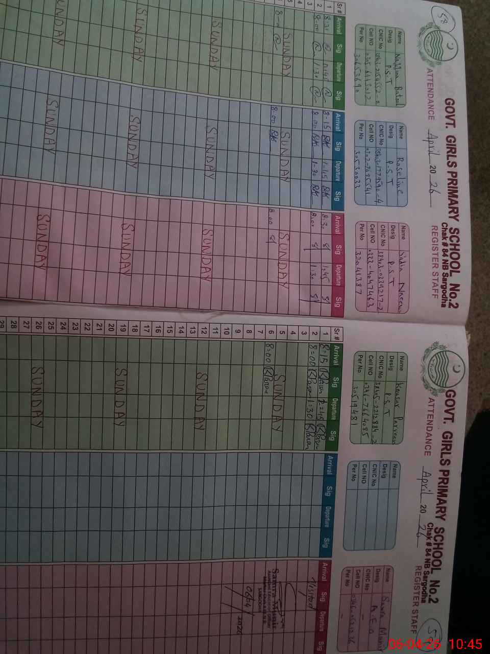 | CNIC | Full Name | Designation | R/C | Absence During Last Calender Month |