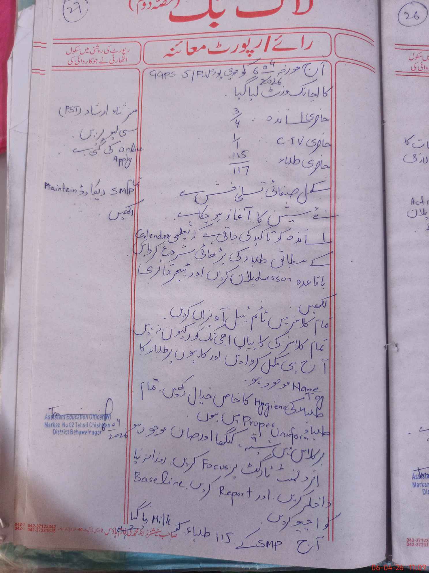 | District: BAHAWALNAGAR | Tehsil: CHISHTIAN | Markaz: CTN -II-FEMALE | Level: Primary | |