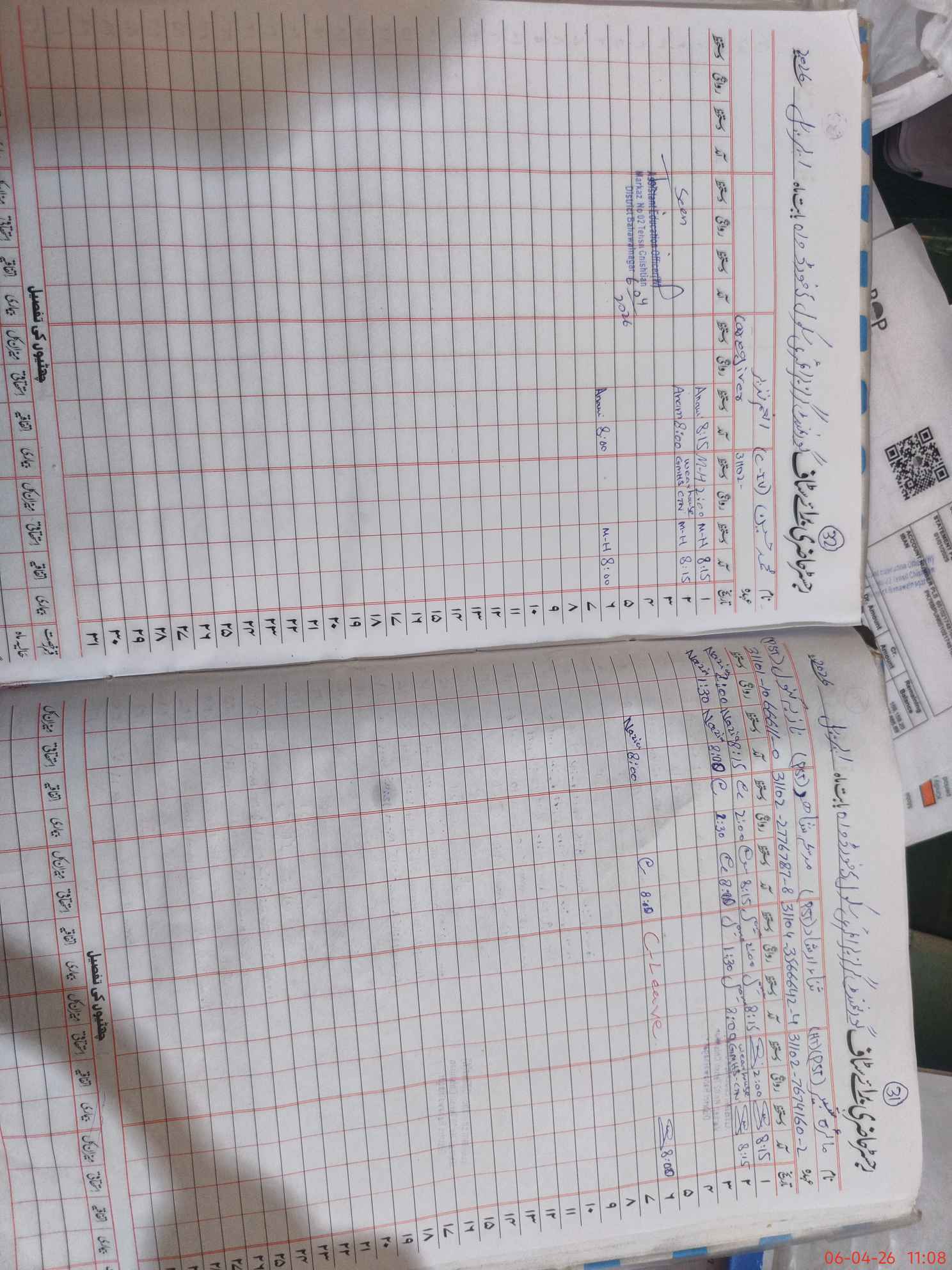 | CNIC | Full Name | Designation | R/C | Absence During Last Calender Month |
