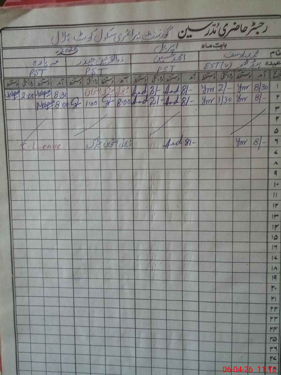 | CNIC | Full Name | Designation | R/C | Absence During Last Calender Month |