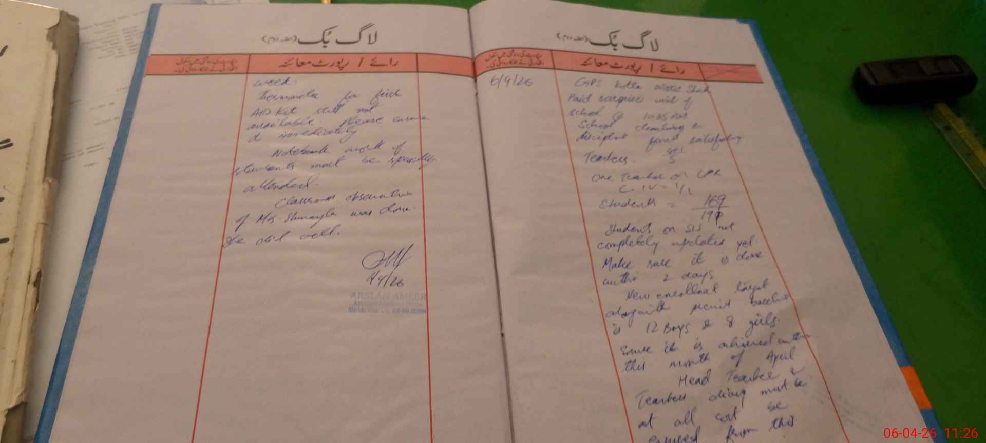 | Attendance Register | Head Teacher | MEA with School | Visit Proof |
