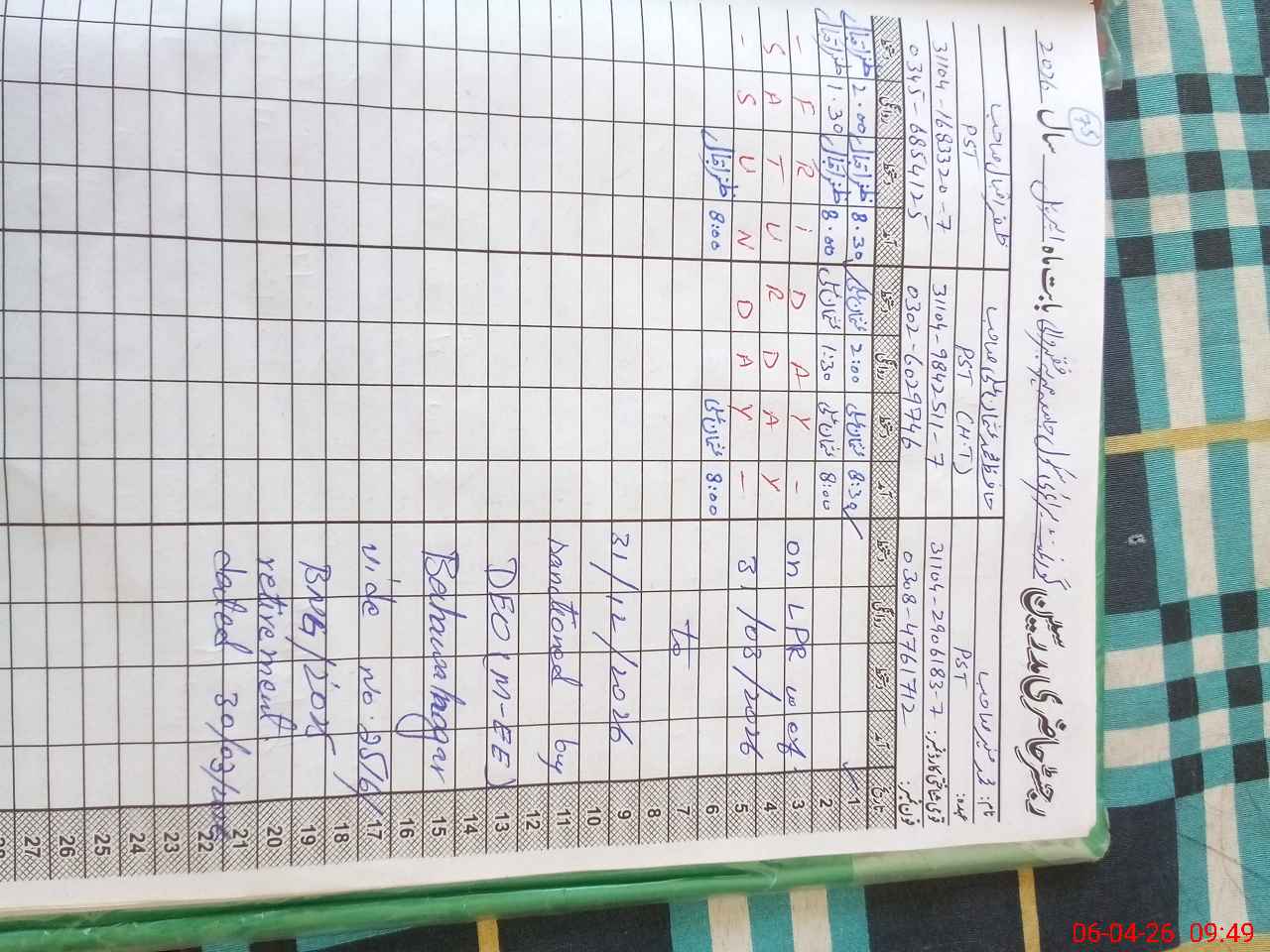 | Name: KH**** HU**** Designation: (School Headmaster's/Headmistress's) PTC Phone/Cell Number: 03**** |