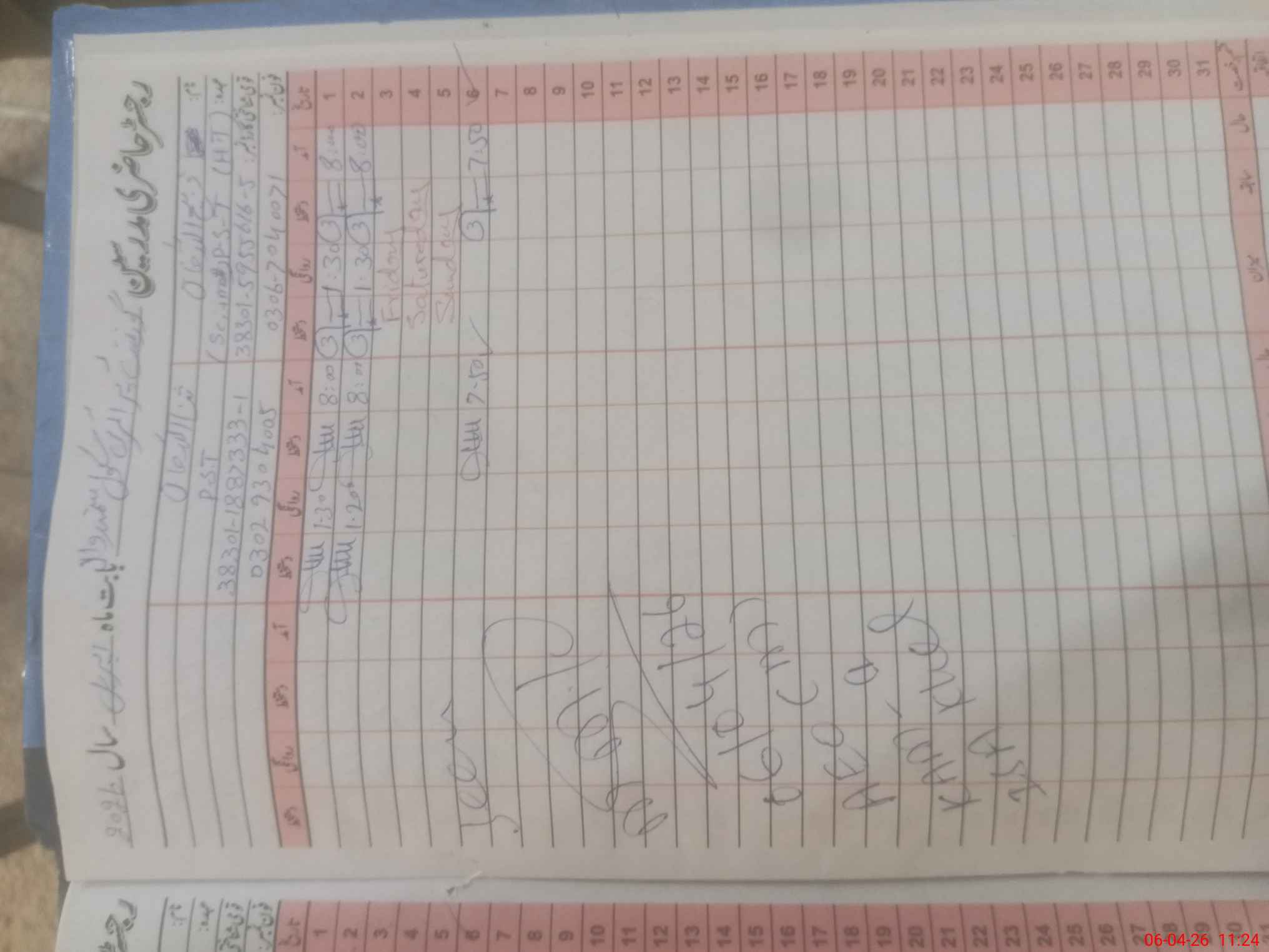 | Name: SA**** KH**** Designation: (School Headmaster's/Headmistress's) PST Phone/Cell Number: 03**** |