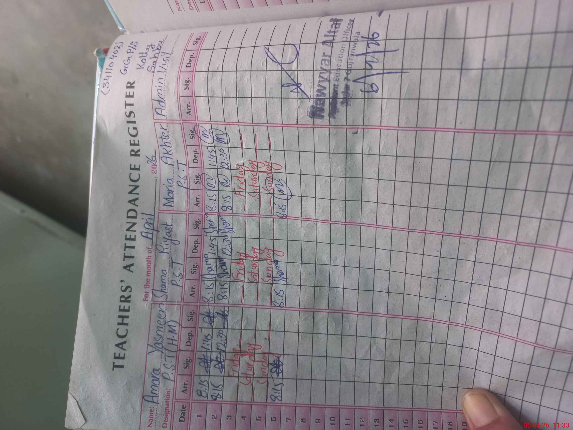 | Name: Sh**** Ri**** Designation: (School Headmaster's/Headmistress's) PST Phone/Cell Number: 03**** |