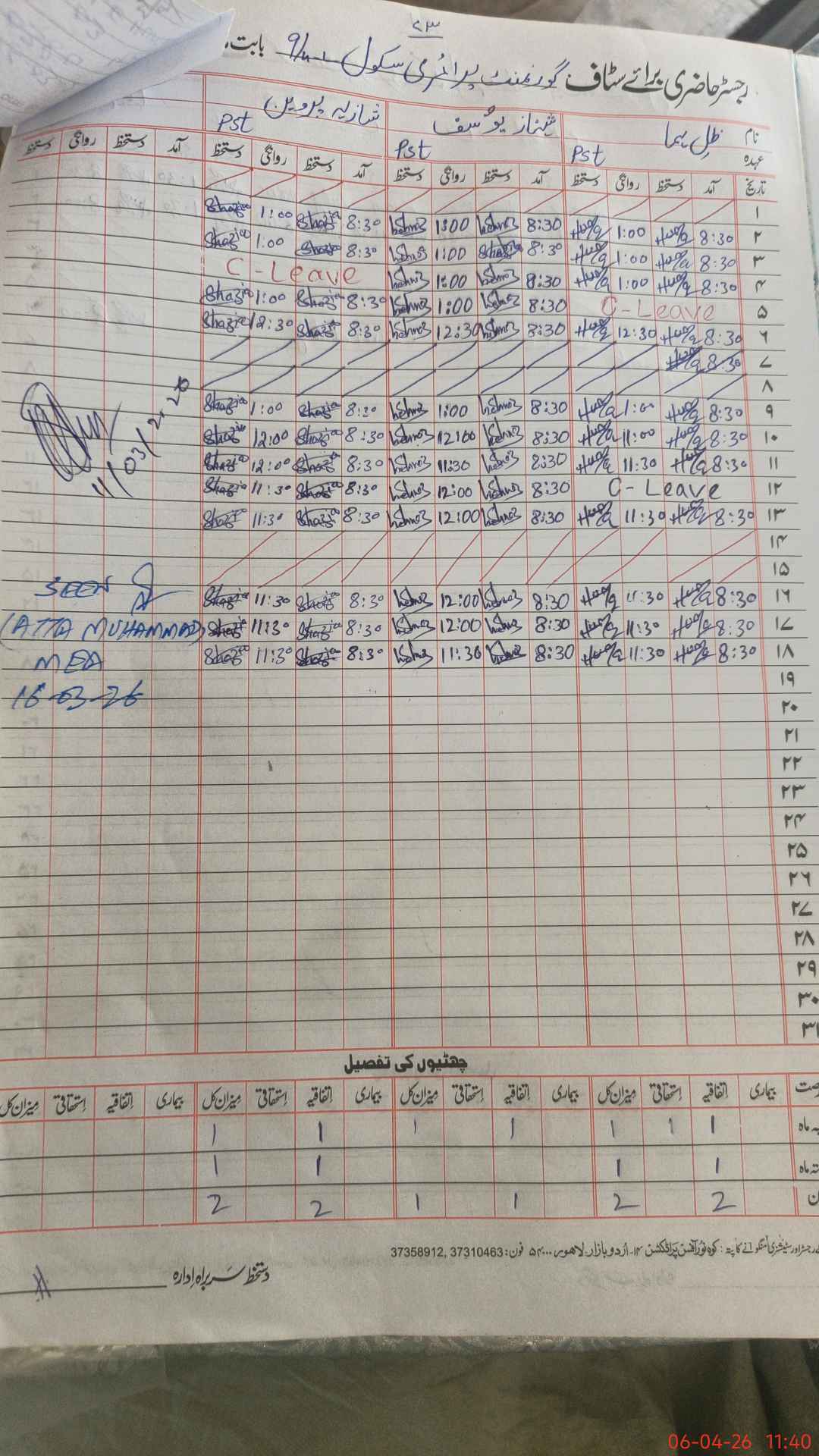 | 35**** | Sh**** Yo**** | PST Arts | Regular | 0 | 0 | 0 | 0 | 0 | 0 | 0 | 0 | 0 | Exam Duty |