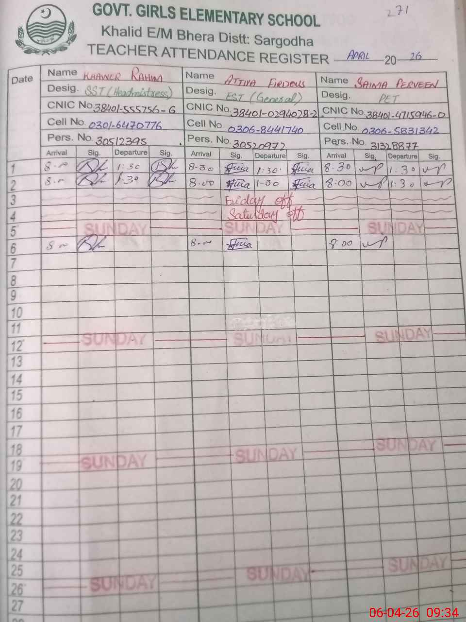 | Name: Kh**** Ra**** Designation: (School Headmaster's/Headmistress's) SST (Arts) Phone/Cell Number: 03**** |