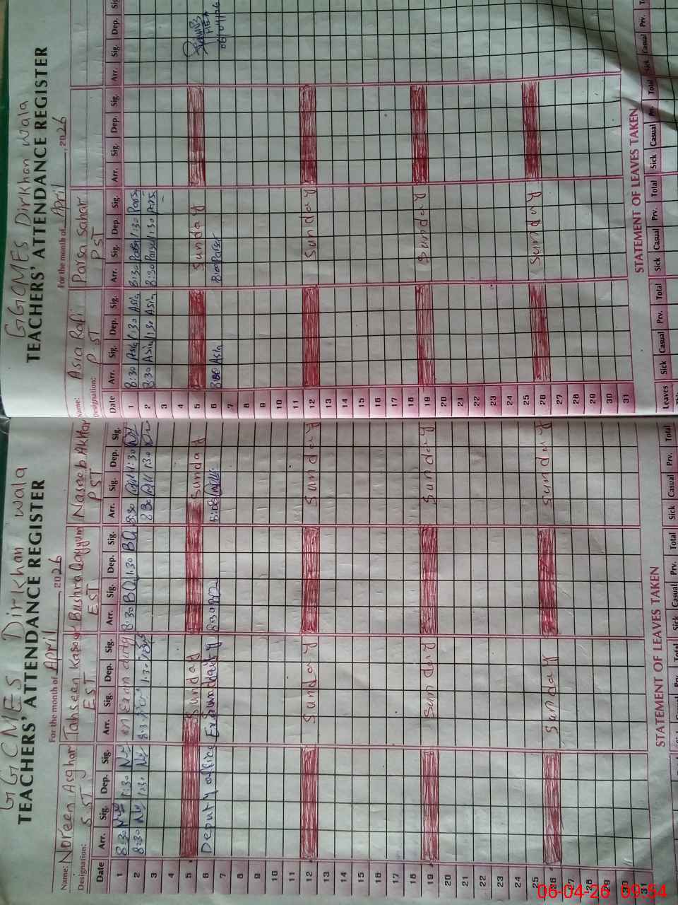 | 32**** | Te**** Ko**** | EST (Math) | Regular | 0 | 0 | 0 | 0 | 0 | 0 | 0 | 0 | 0 | Exam Duty |