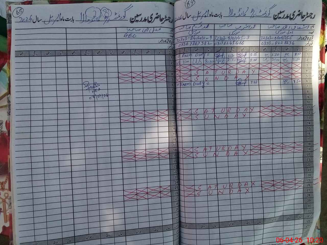 | Name: AS**** AH**** Designation: (School Headmaster's/Headmistress's) PST Phone/Cell Number: 03**** |