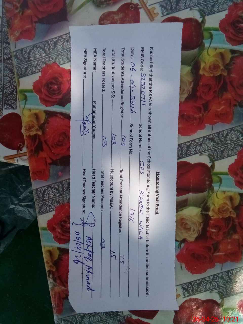 | EMIS Code: 32320711 | Name of School: GPS KANDH WALA | |||