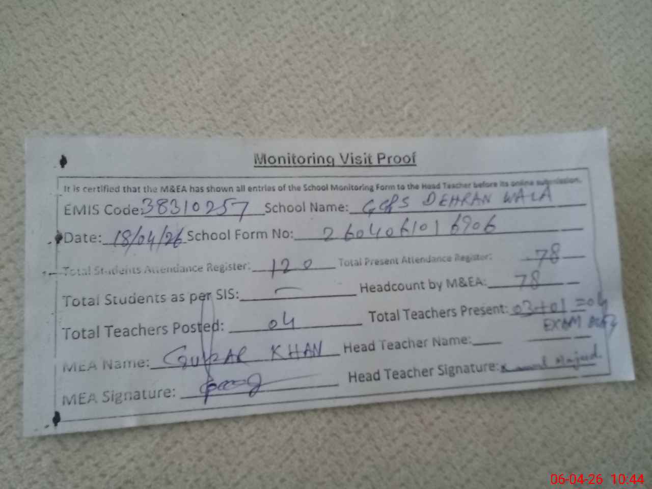 | EMIS Code: 38310257 | Name of School: GGPS DHERAN WALA | |||