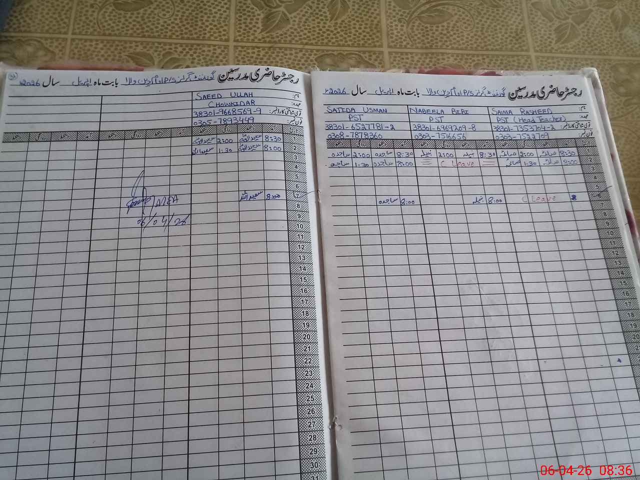 | Name: Sa**** Ra**** Designation: (School Headmaster's/Headmistress's) Ese Phone/Cell Number: 03**** |
