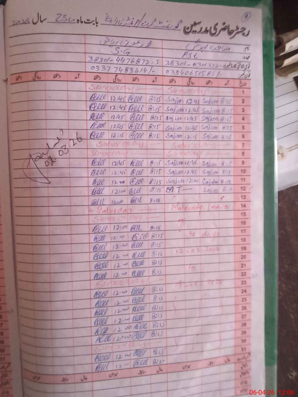 | 38**** | Sa**** Me**** | PST Science/Maths | Regular | 0 | 0 | 0 | 0 | 0 | 0 | 0 | 0 | 0 | Maternity |