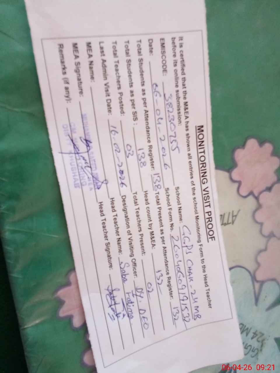 | EMIS Code: 38230755 | Name of School: GGPS CHAK NO 24 MB | |||