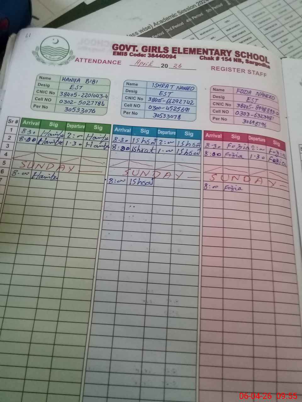 | EMIS Code: 38440094 | Name of School: GGES CHAK NO.154 NB | |||