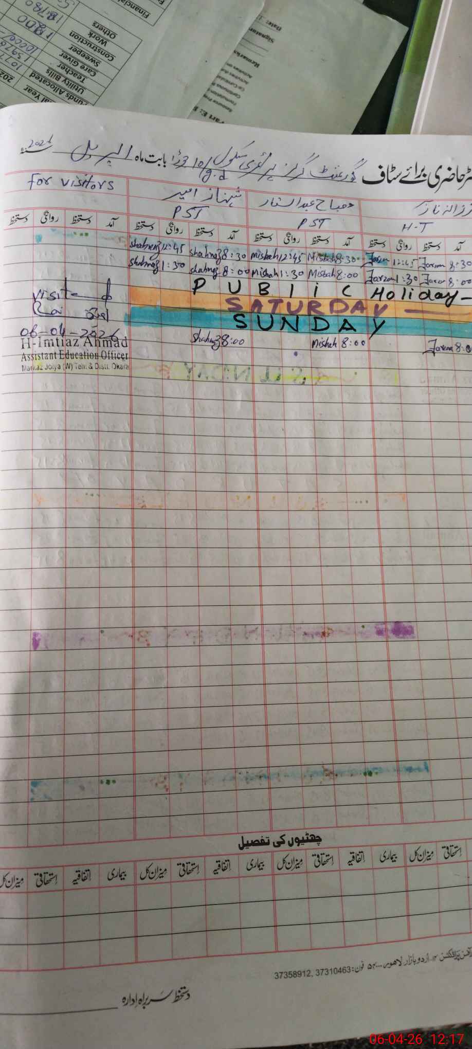 | Name: FA**** NA**** Designation: (School Headmaster's/Headmistress's) PST/ Phone/Cell Number: 03**** |