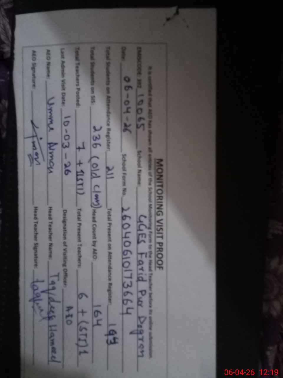 | EMIS Code: 39210065 | Name of School: GGES FARID PUR DOGRAN | |||