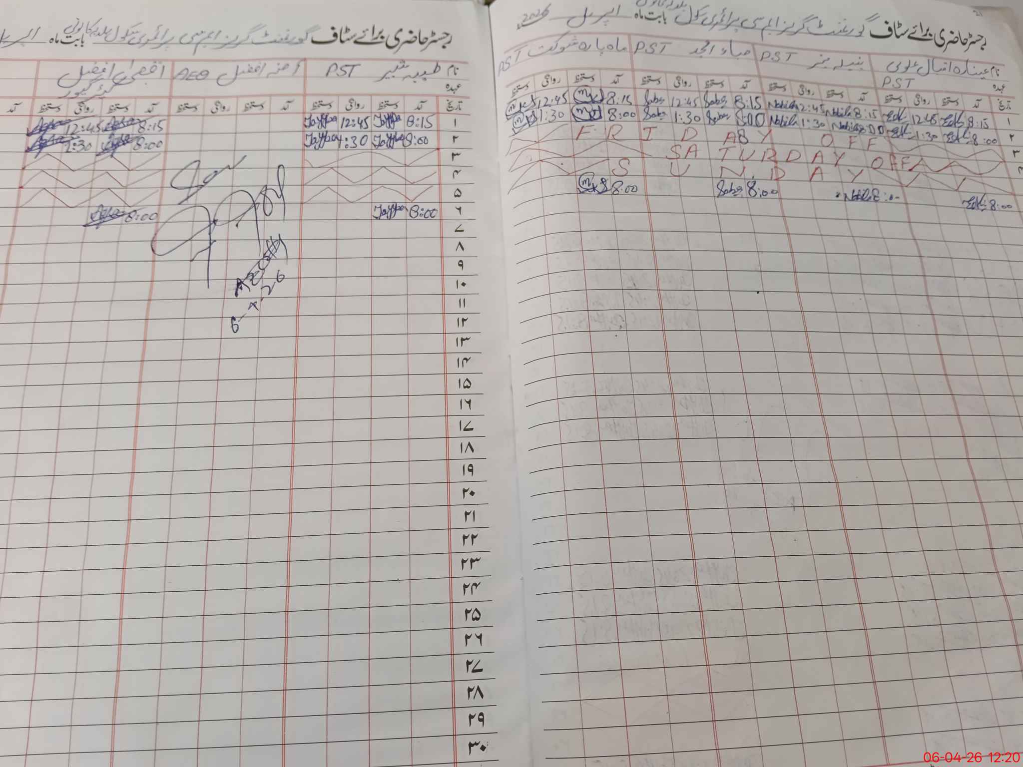 | CNIC | Full Name | Designation | R/C | Absence During Last Calender Month |