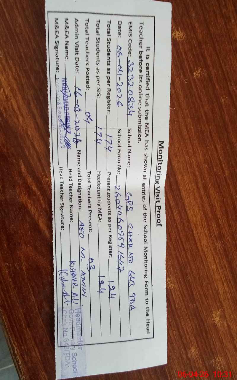 | EMIS Code: 32320834 | Name of School: GPS CHAK NO.643/TDA | |||