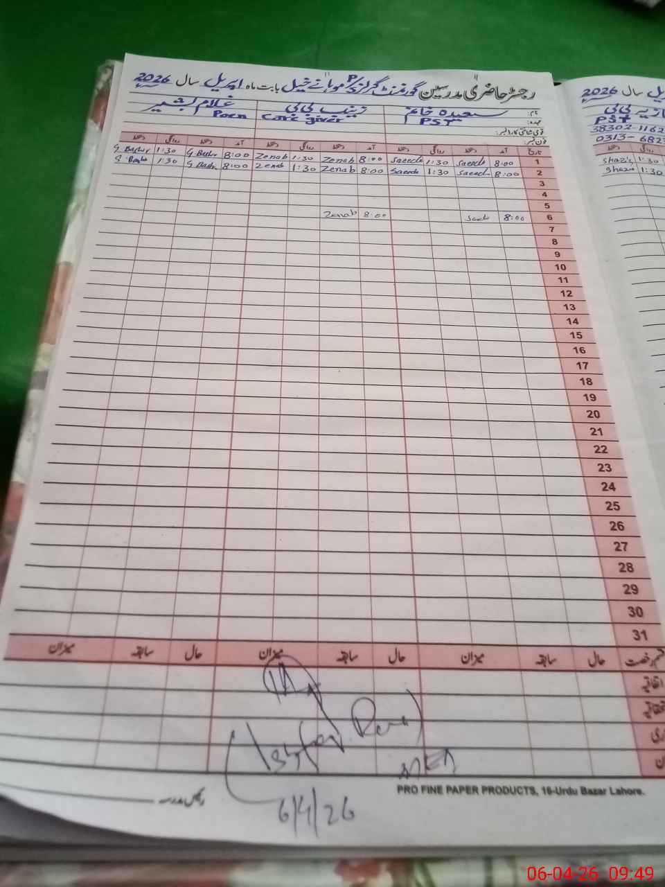 | 38**** | Gh**** Sh**** | PEON | Regular | 0 | 0 | 0 | 0 | 0 | 0 | 0 | 0 | 0 | Absent (Un-Authorized) |