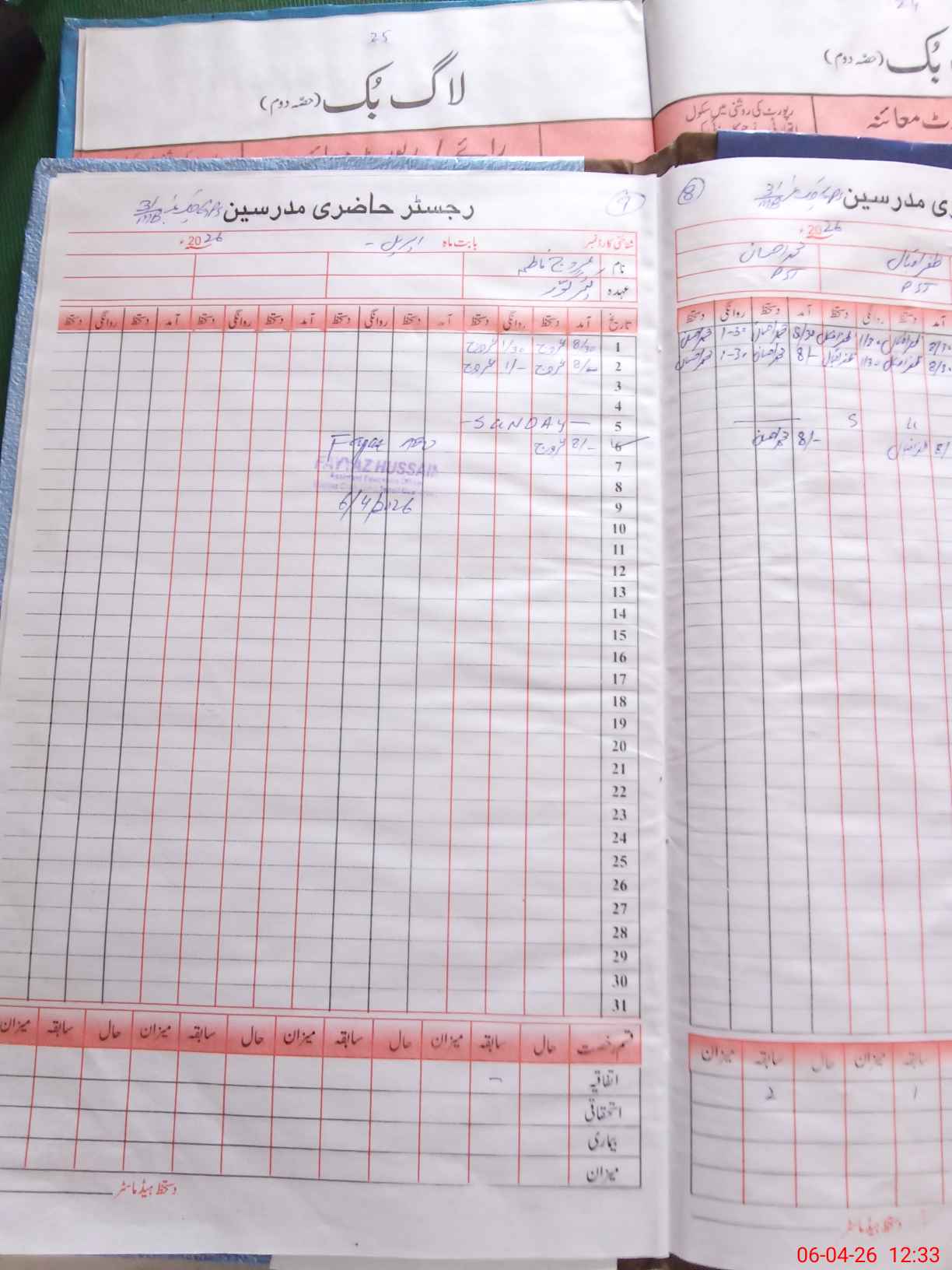| CNIC | Full Name | Designation | R/C | Absence During Last Calender Month |