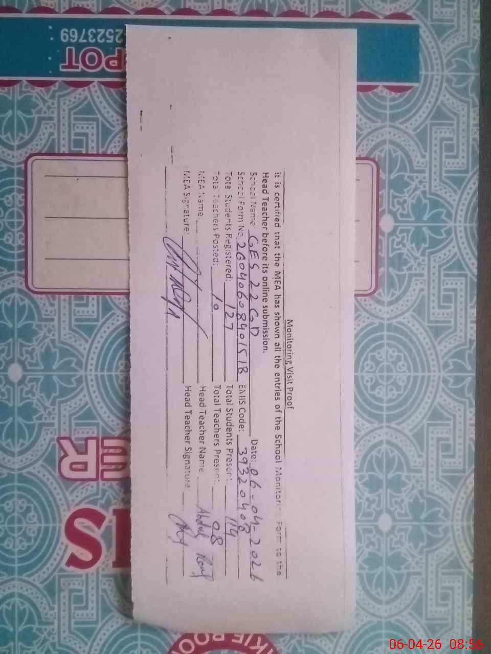 | EMIS Code: 39320408 | Name of School: GES CHAK NO. 22/G.D | |||