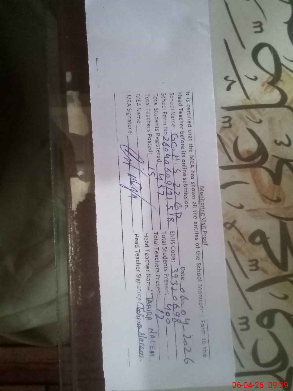 | EMIS Code: 39320698 | Name of School: GGHS 22/G.D | |||