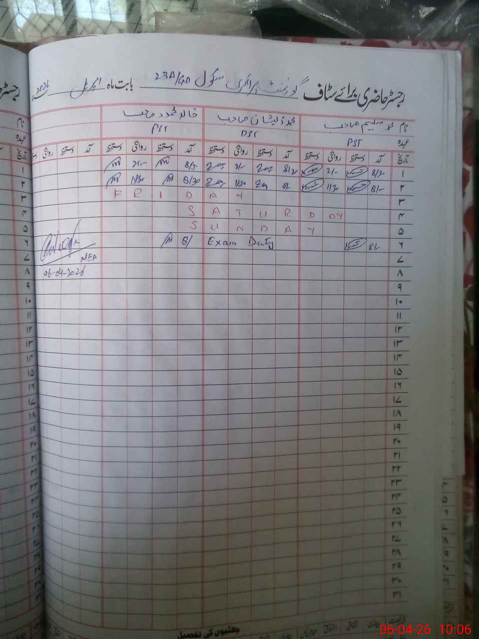| 35**** | Mu**** Ze**** | PST Science/Maths | Regular | 0 | 0 | 0 | 0 | 0 | 0 | 0 | 0 | 0 | Exam Duty |