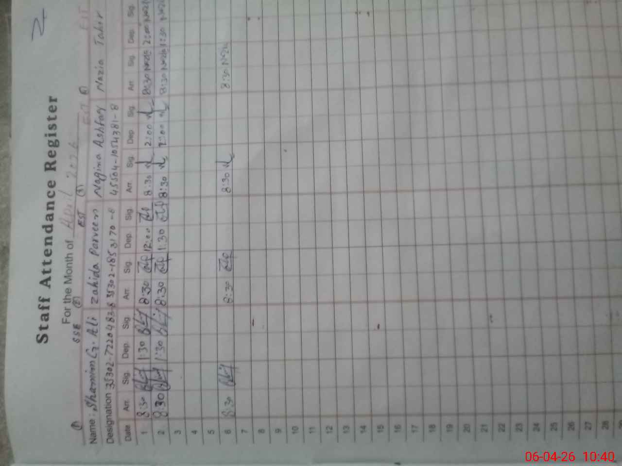 | Name: Sh**** Na**** Designation: (School Headmaster's/Headmistress's) SST Phone/Cell Number: 03**** |