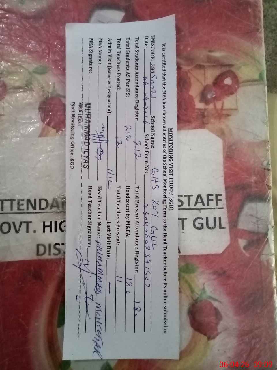 | EMIS Code: 38450021 | Name of School: GHS KOT GUL | |||