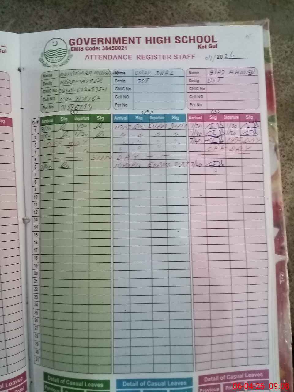 | 38**** | Um**** Dr**** | SST Science | Regular | 0 | 2 | 0 | 0 | 0 | 0 | 0 | 0 | 0 | Exam Duty |