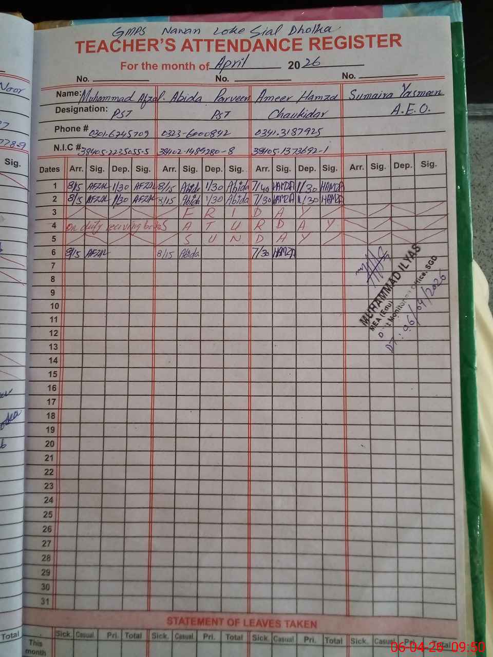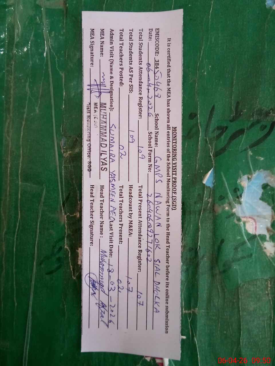 | EMIS Code: 38450468 | Name of School: GMPS NAWAN LOK SIAL DHOLKA | |||