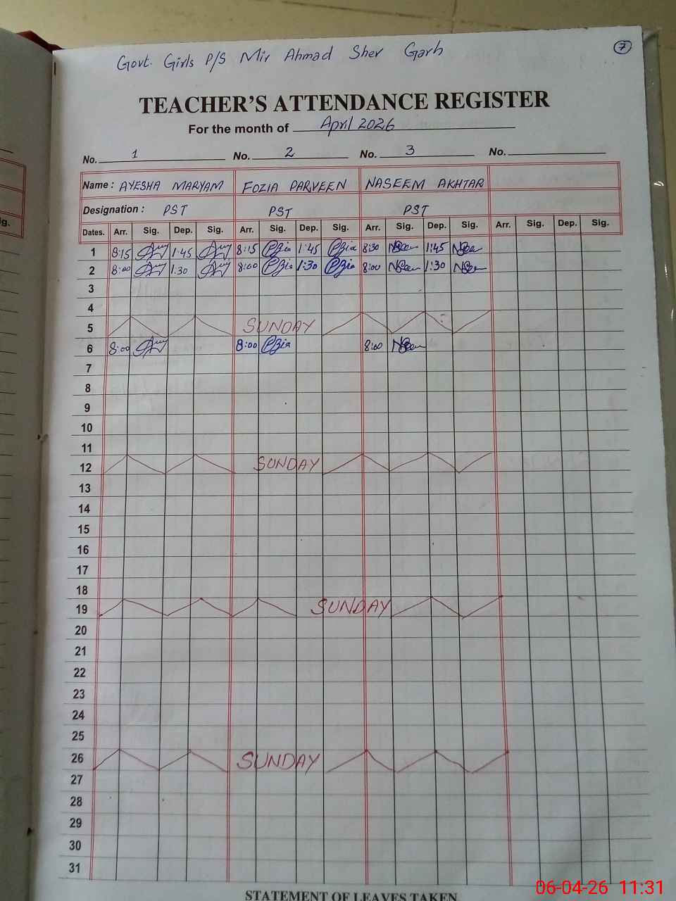 | 38**** | Sa**** Ka**** | PST Science/Maths | Regular | 0 | 0 | 0 | 0 | 0 | 0 | 0 | 0 | 0 | Casual |