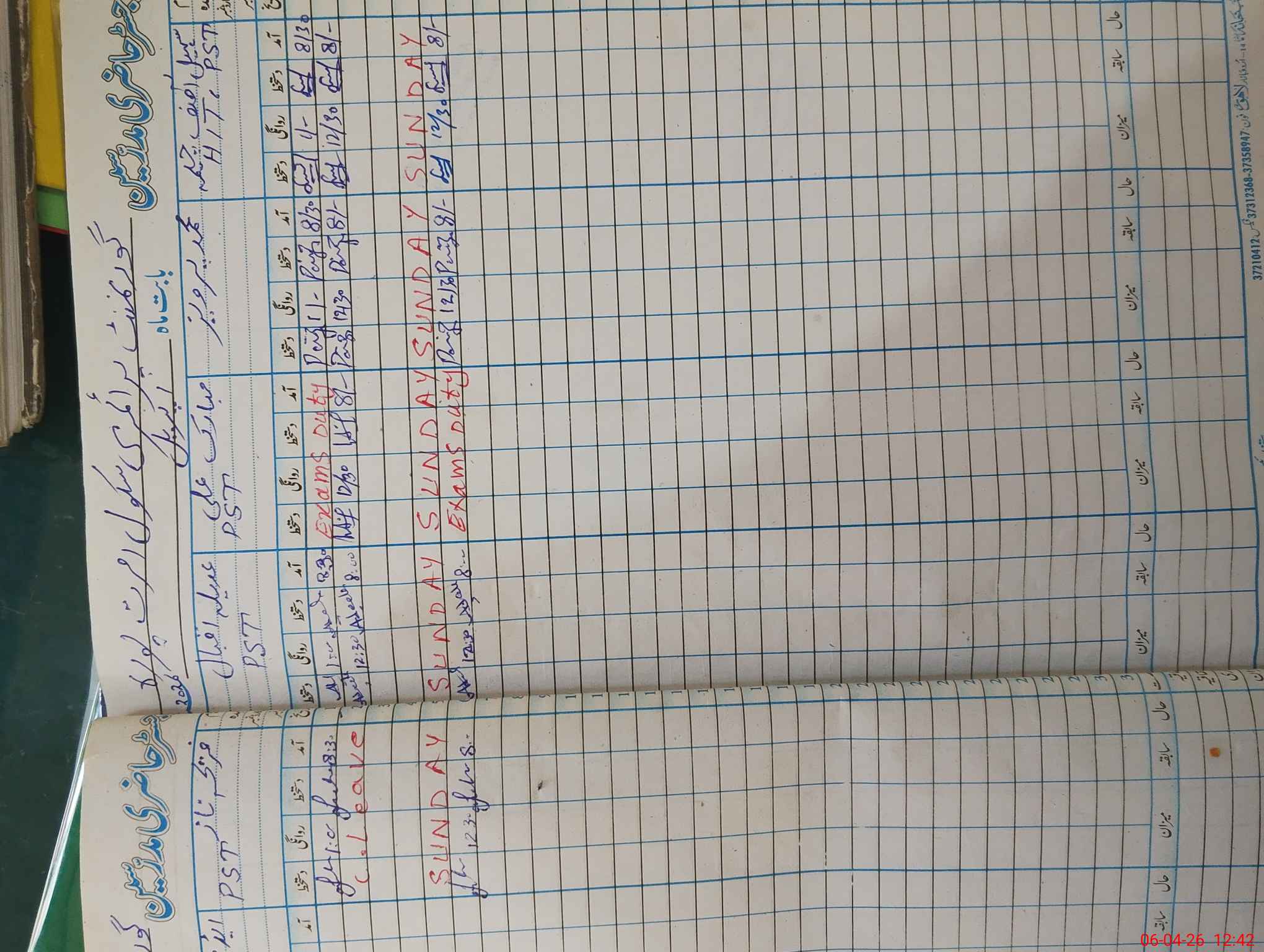 | 34**** | Mu**** Al**** | PST Arts | Regular | 0 | 0 | 0 | 0 | 0 | 0 | 0 | 0 | 0 | Exam Duty |